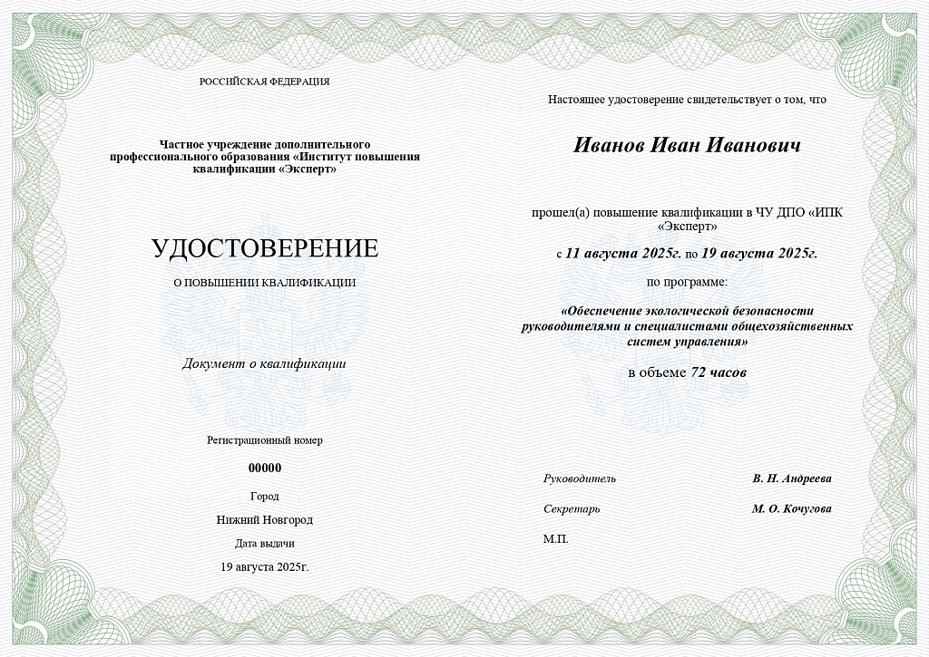 На данный момент законодательство Российской Федерации не предусматривает четких требований к частоте повторного обучения руководителей по экологии. Тем не менее важно, чтобы руководители регулярно обновляли свои знания и умения в области экологической безопасности через участие в специализированных образовательных программах, адаптированных к изменениям в законодательстве и технологиях.