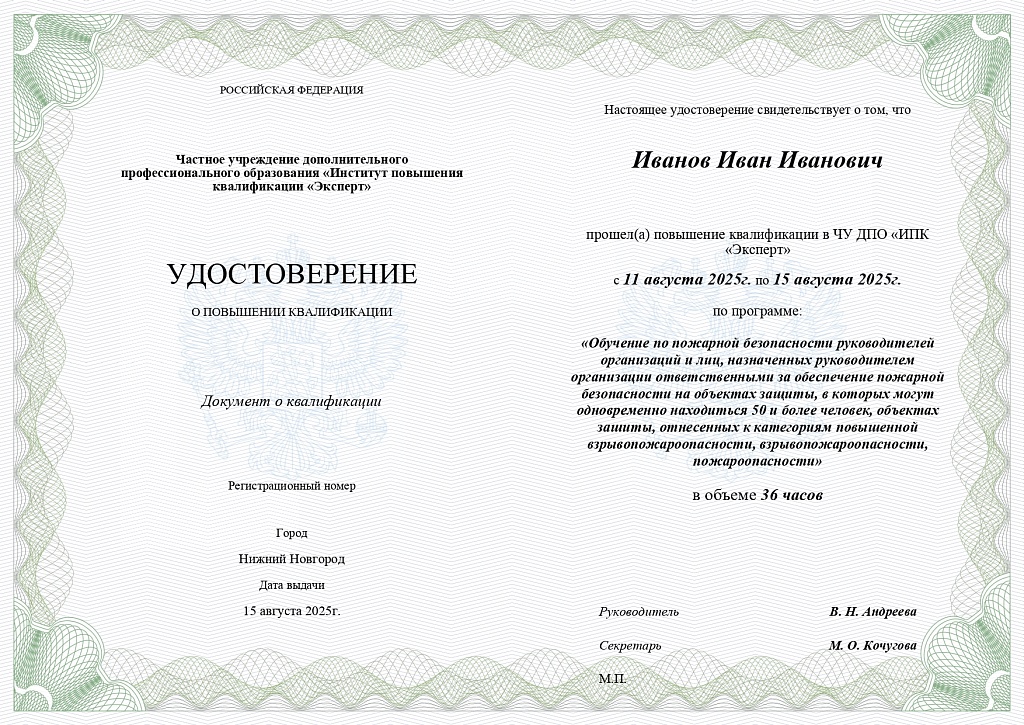 1 сентября 2025 года начал действовать обновленный порядок обучения по пожарной безопасности - Приказ МЧС № 1120. Периодичность дополнительного профессионального образования по пожарной безопасности определяет руководитель организации. Однако рекомендовано проводить его не реже одного раза в пять лет.