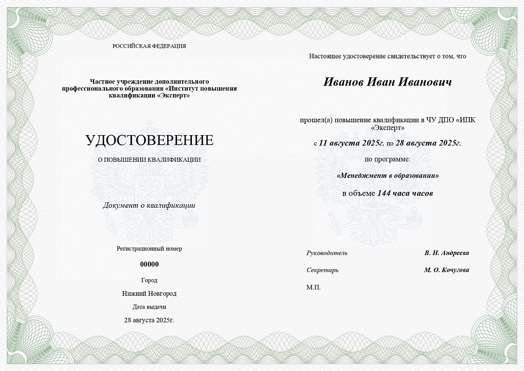 Курс ориентирован на углубленное изучение проблем и повышение профессионального уровня в области образовательного менеджмента.
