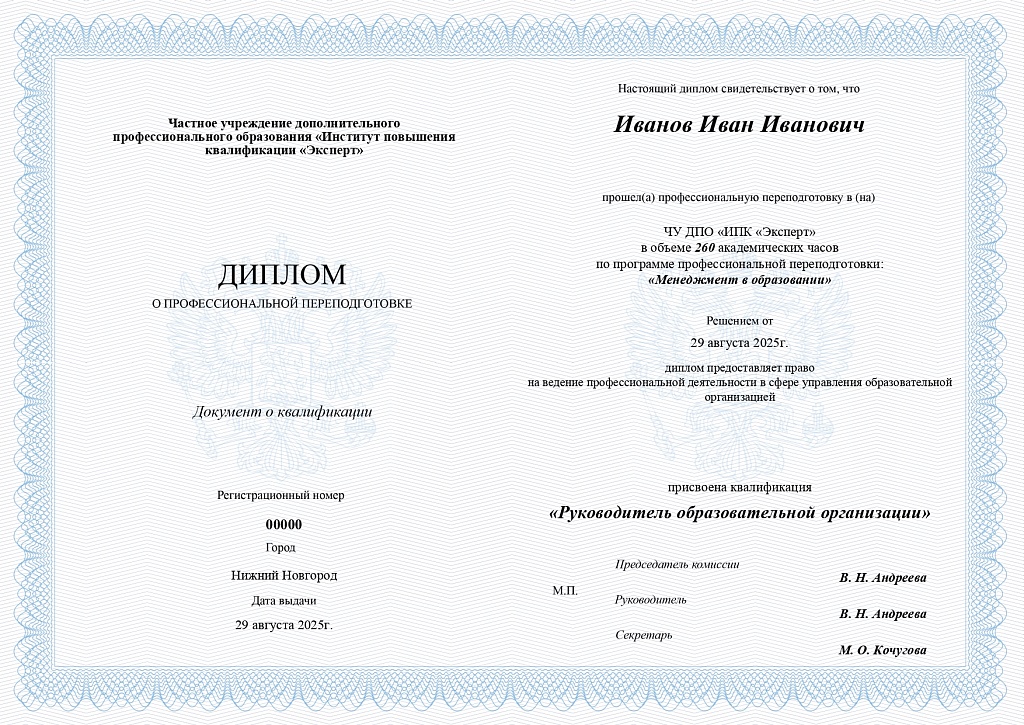 Дополнительная образовательная программа профессиональной переподготовки «Менеджмент в образовании» подойдет для руководителей (директоров, заведующих), заместителей руководителей, руководителей структурных подразделений. Присваивается квалификация - Руководитель образовательной организации.