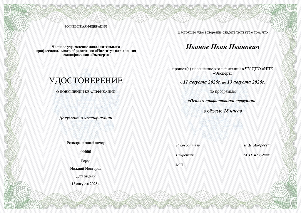 Дополнительная профессиональная программа повышения квалификации «Основы профилактики коррупции» разработана для обучения сотрудников организации и направлена на совершенствование и (или) получение новых компетенций, необходимых в сфере профилактики коррупционных и иных правонарушений, на основе нормативных правовых актов Российской Федерации в области противодействия коррупции, методологических и методических подходов в области противодействия коррупции, и (или) повышение профессионального уровня в рамках имеющейся квалификации.